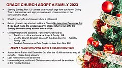 Starting Sunday, Nov. 12 - please take your gift tags from our Advent Giving Tree in the Narthex and sign your name and phone number on the corresponding chart.